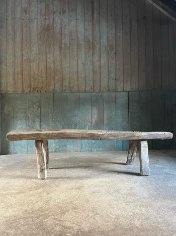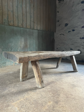 A quirky vernacular scrubbed pine table, originally constructed for holding truckles of cheese.