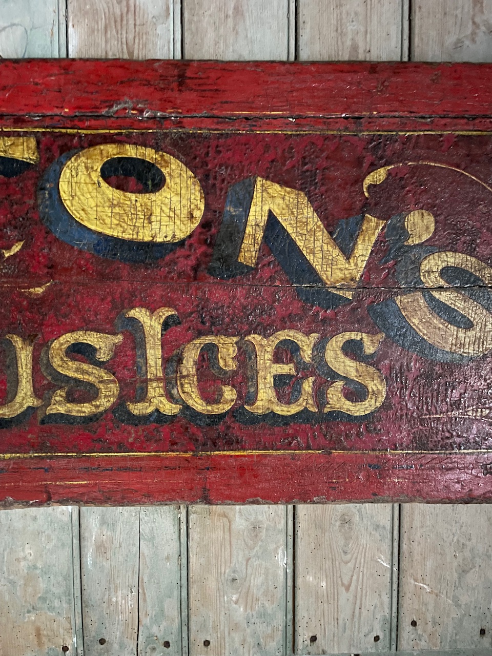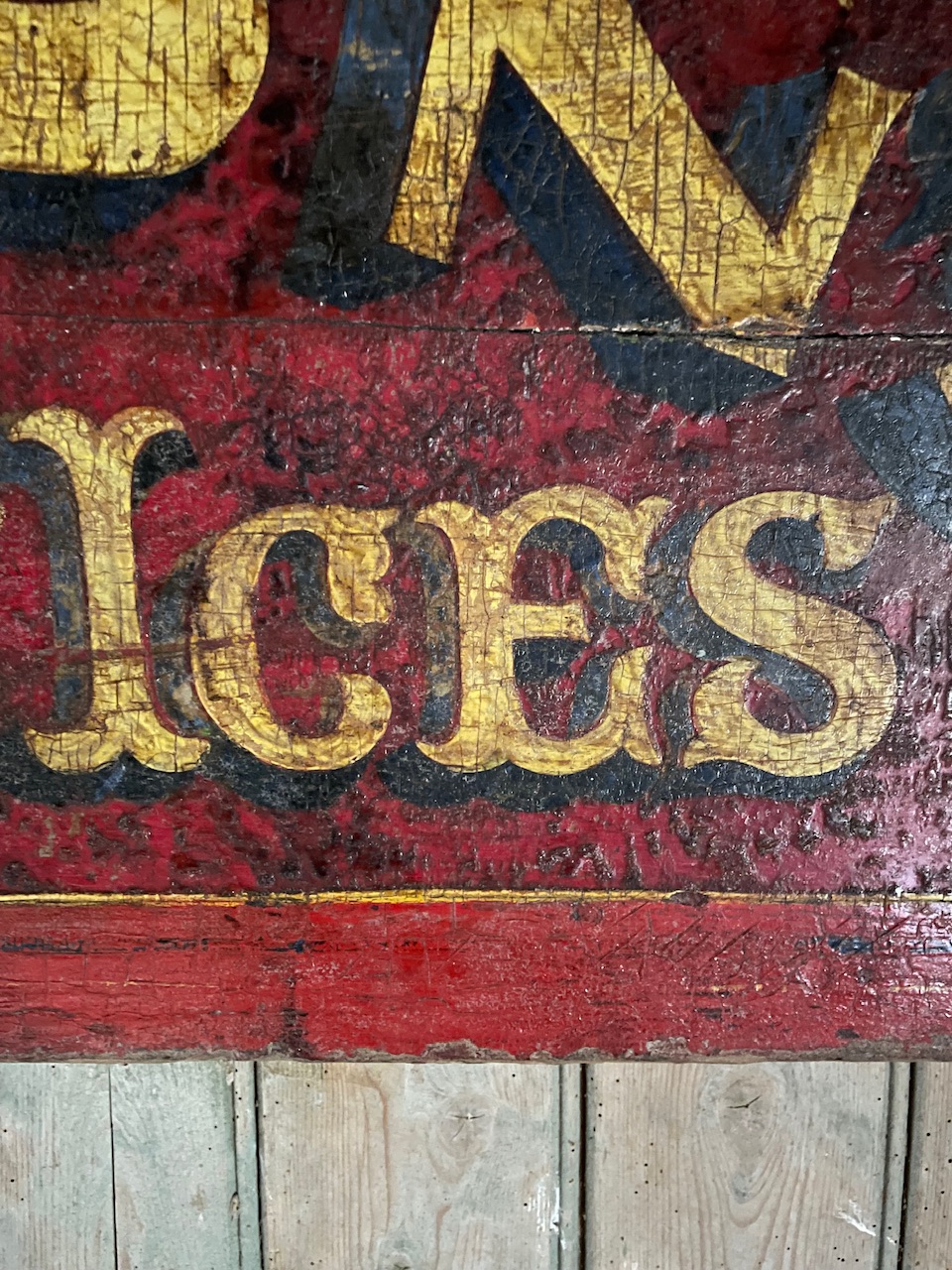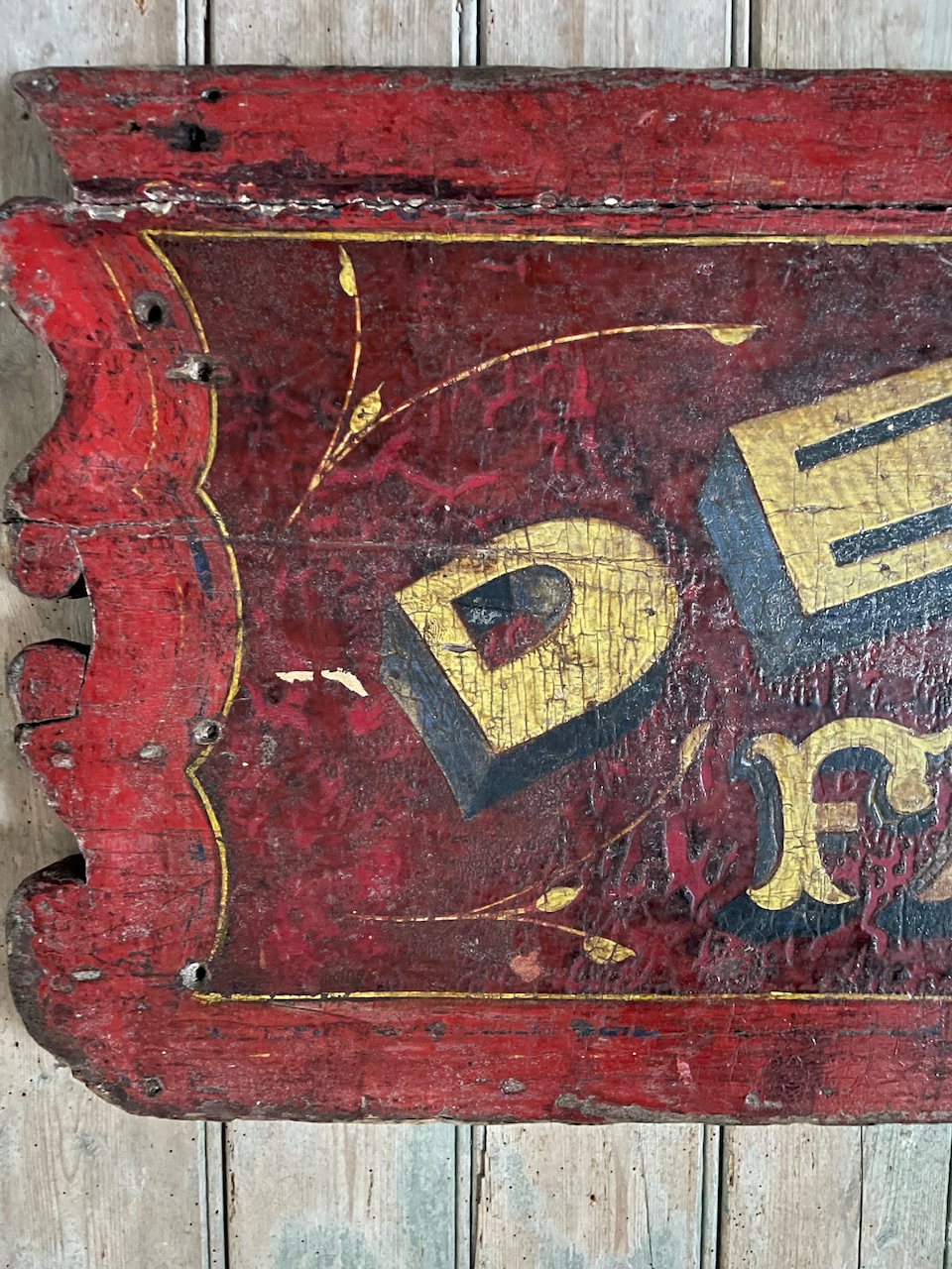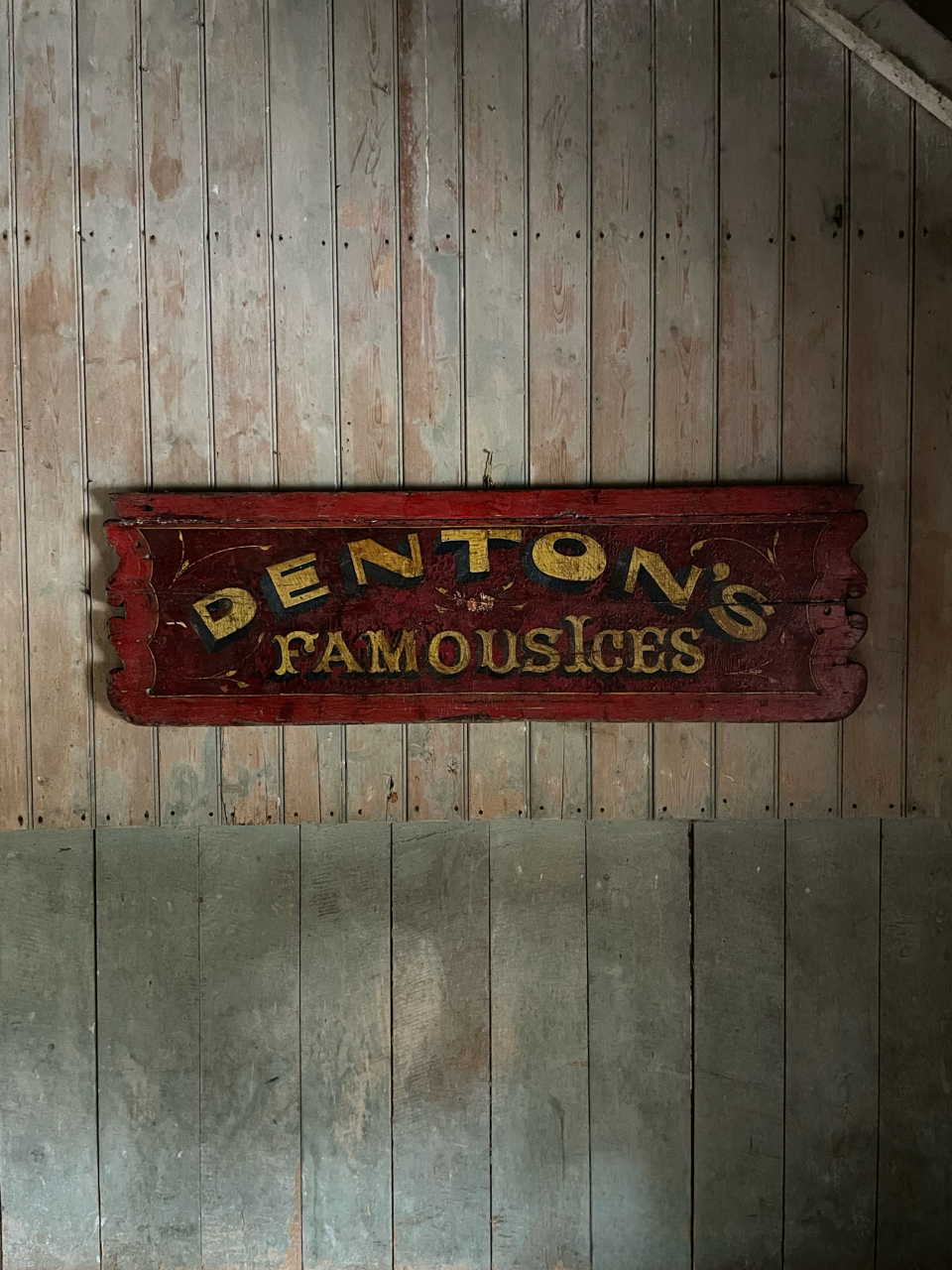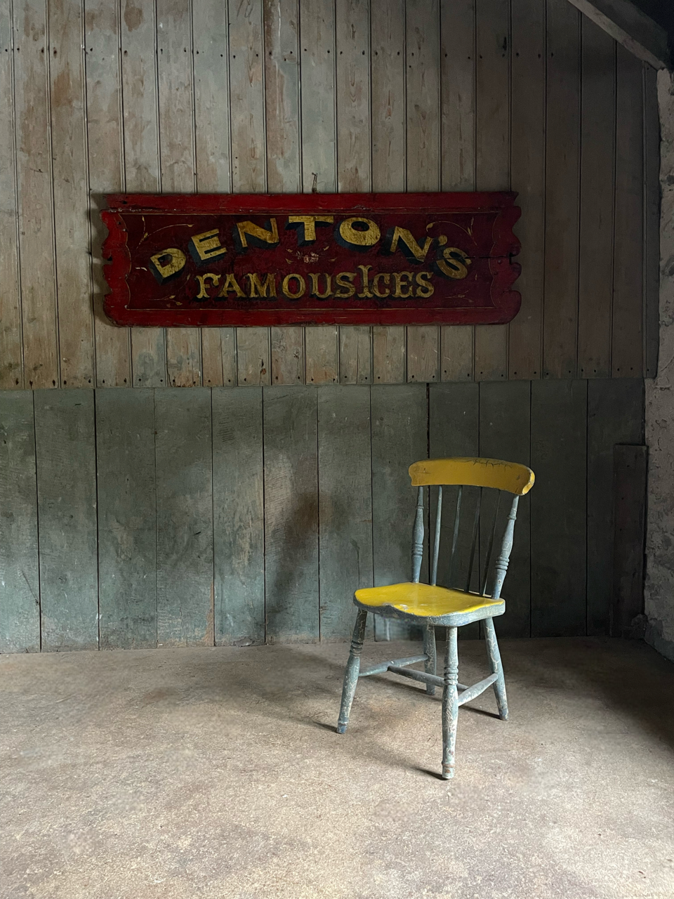 A rather wonderful, late Victorian period, painted wooden cart back advertising ‘Denton’s Famous Ices’