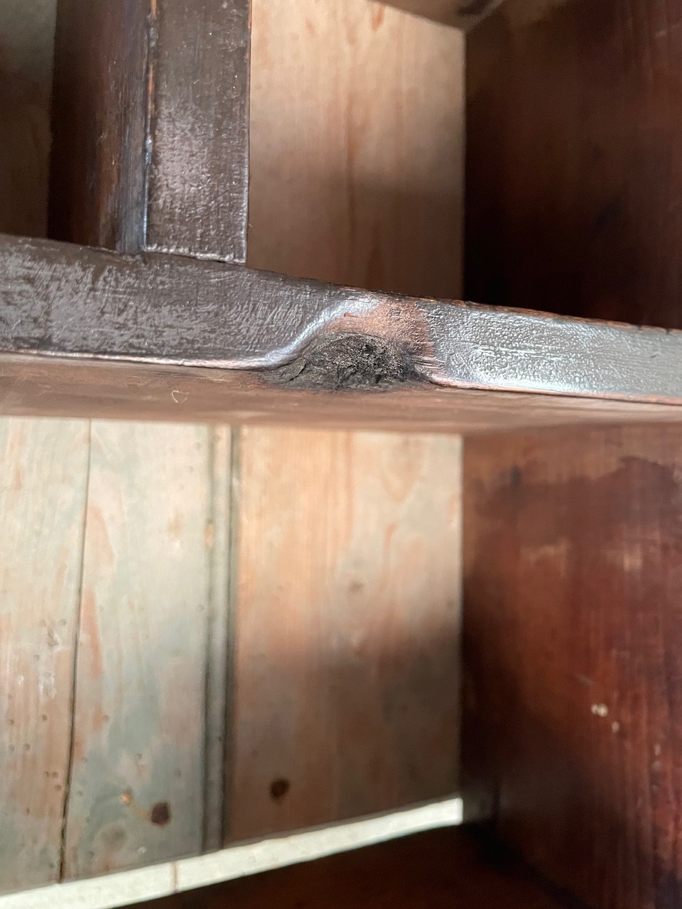 Particularly like the scorch mark lower right from a candle which regularly sat on the shelf below.