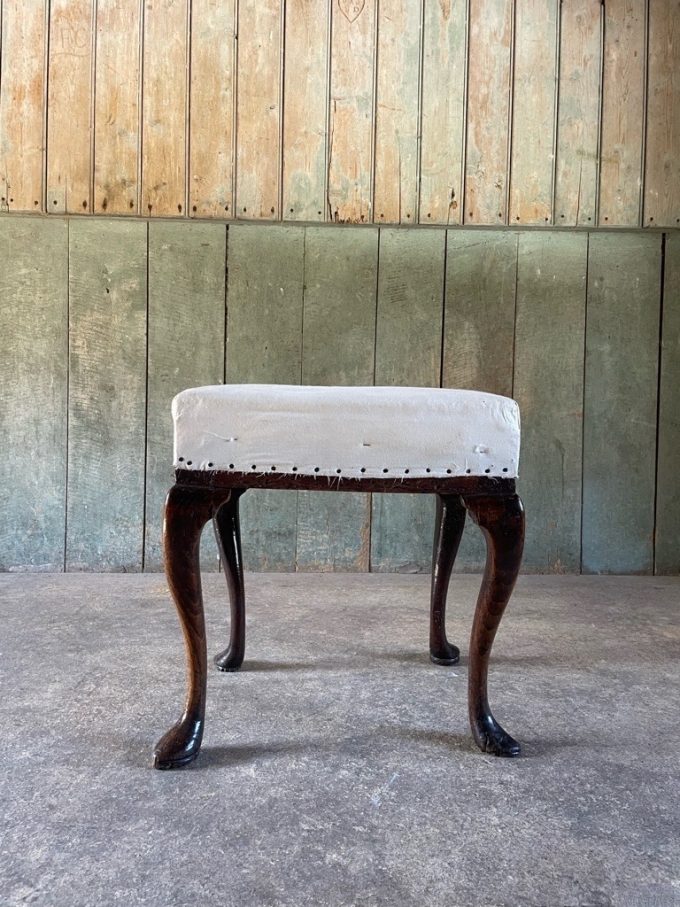 A very scarce, George I period, cabriole leg stool. A charming, provincial, example with oak legs with elm rails.