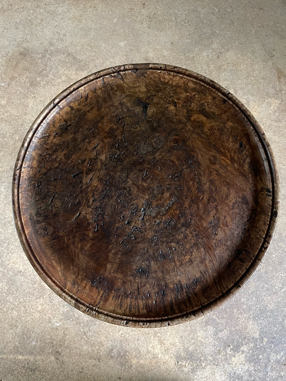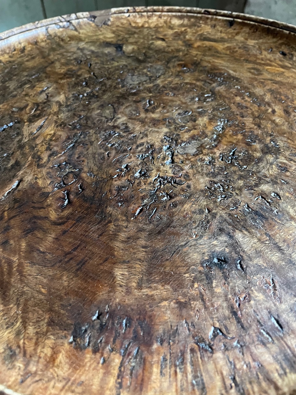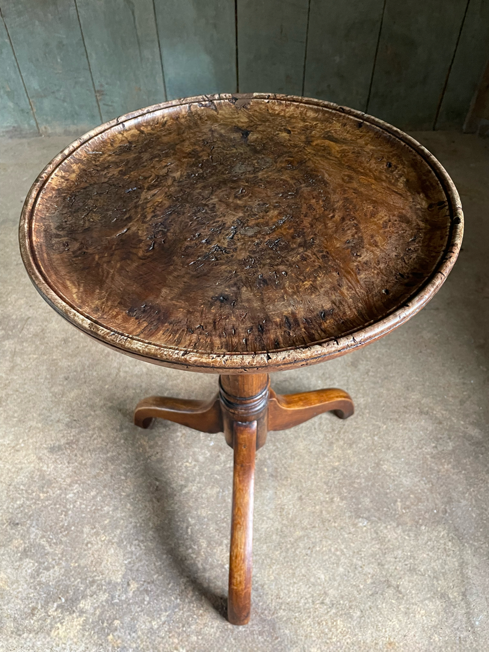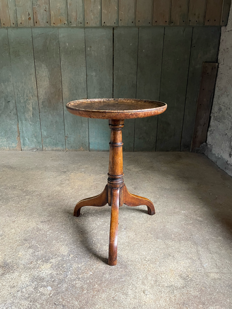 A very attractive and useful Georgian Revival oak wine table with a wonderful pollard oak top.