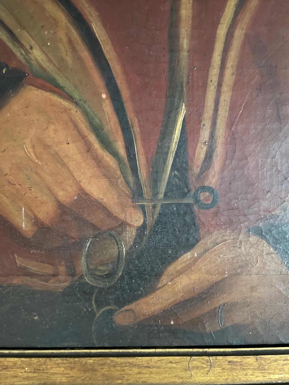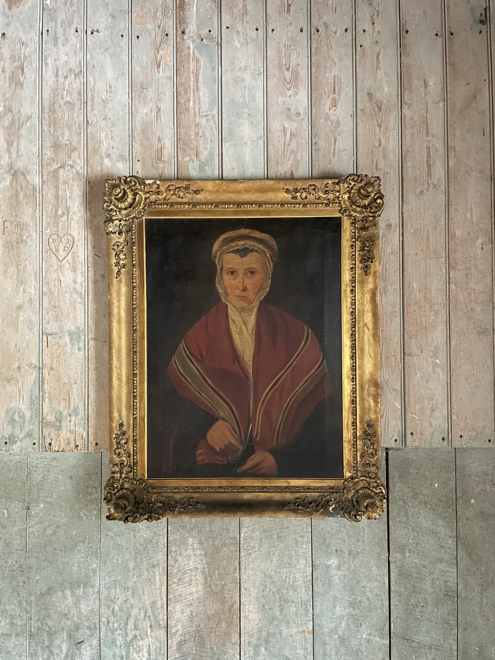 Oil on canvas, in its original, slightly distressed, gilded frame.