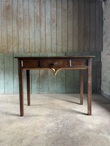 Drop in cushion seats recently reupholstered in a pale grey heavy linen.