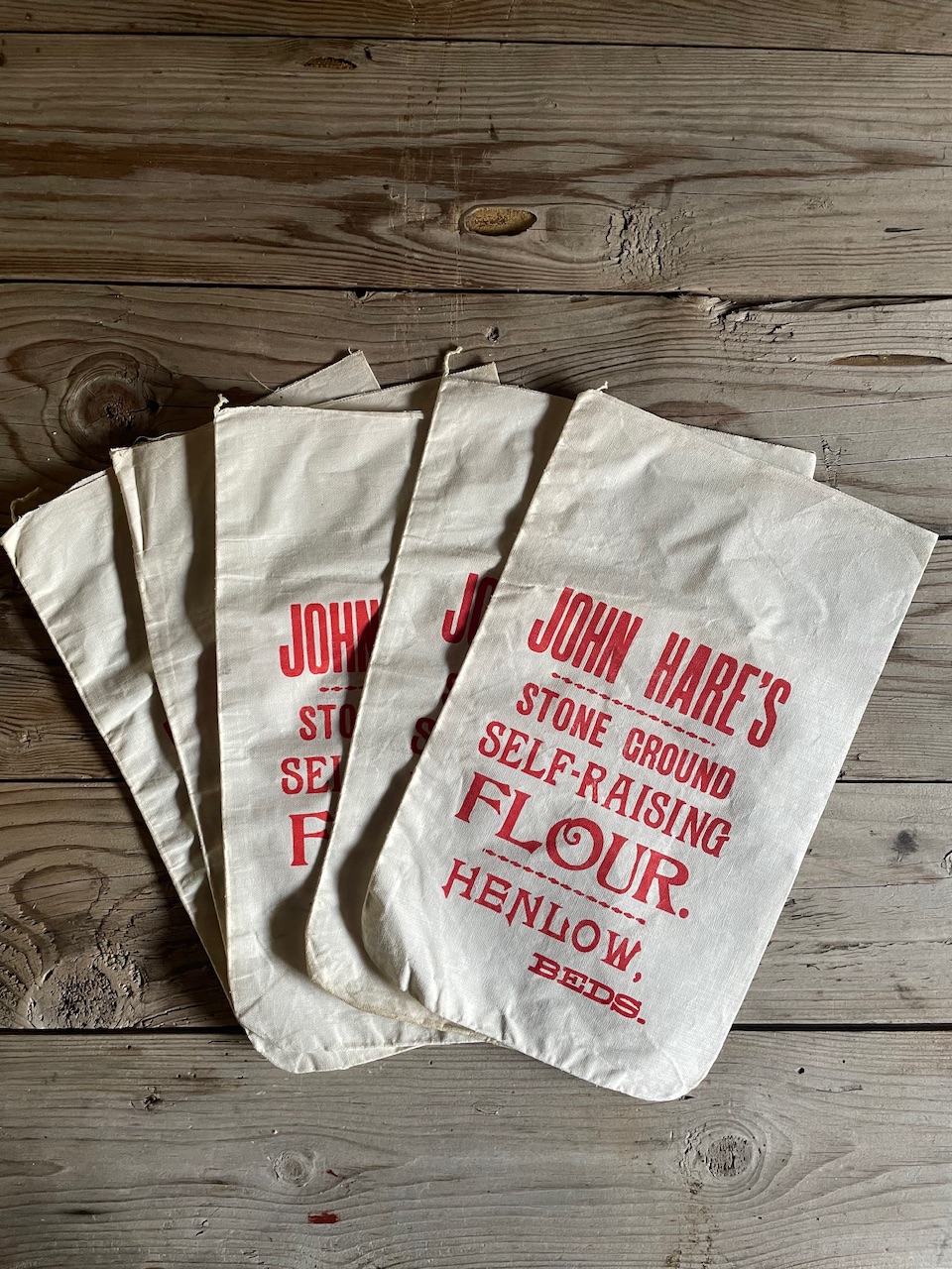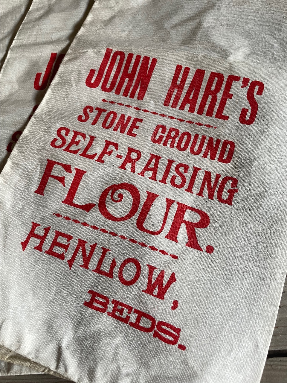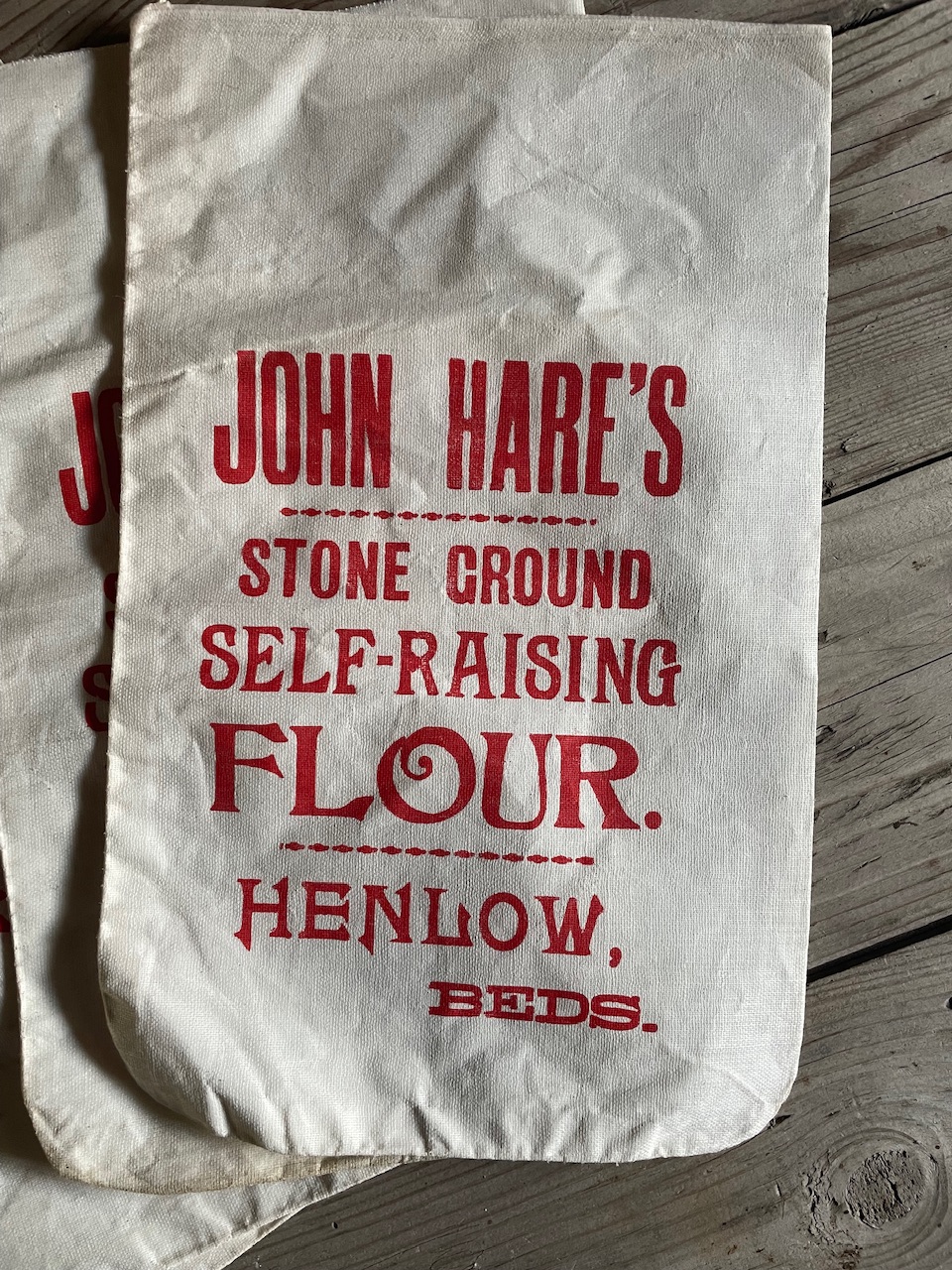 A run of early C20th cloth flour bags from John Hare’s of Henlow, Bedfordshire.