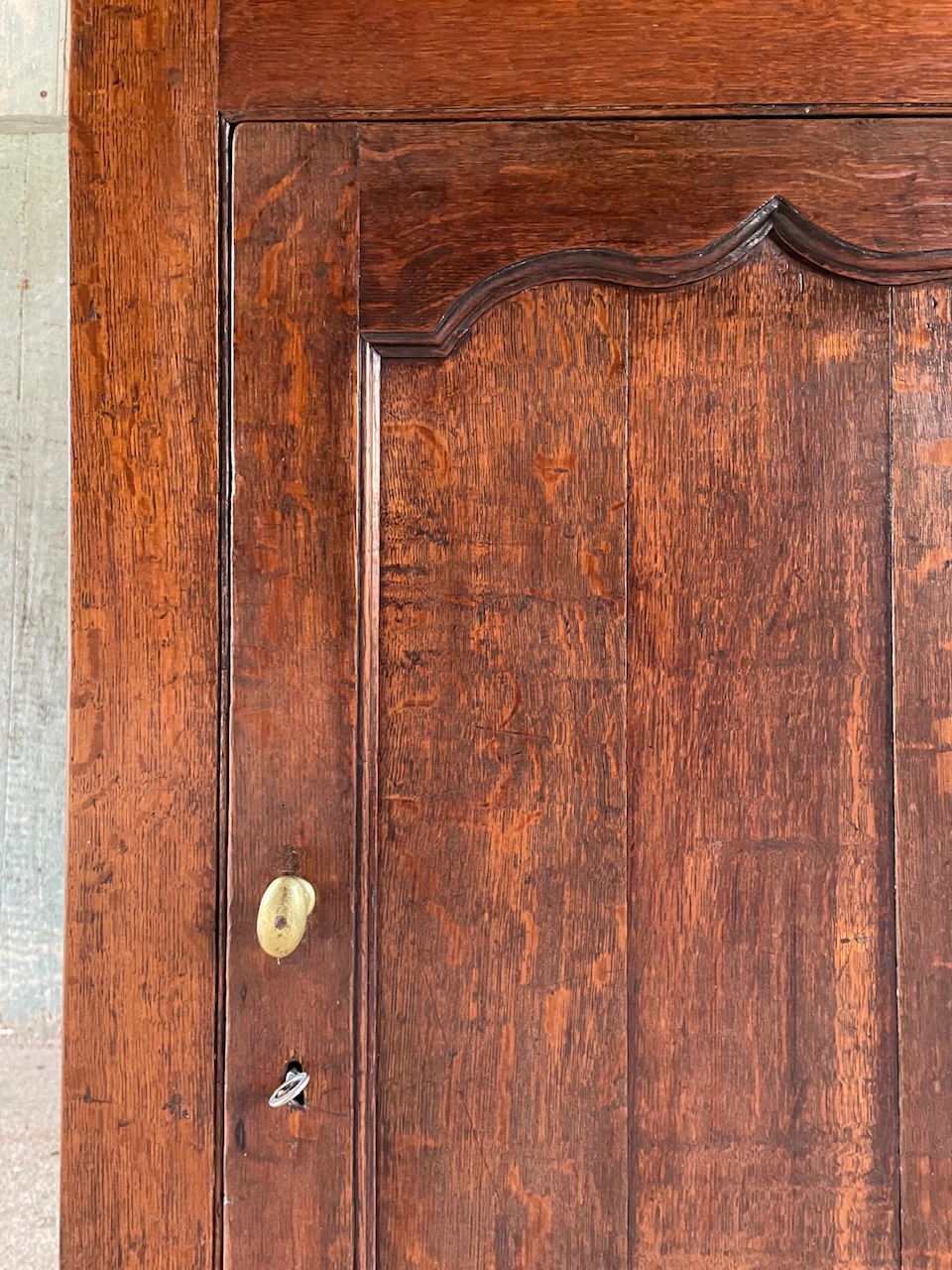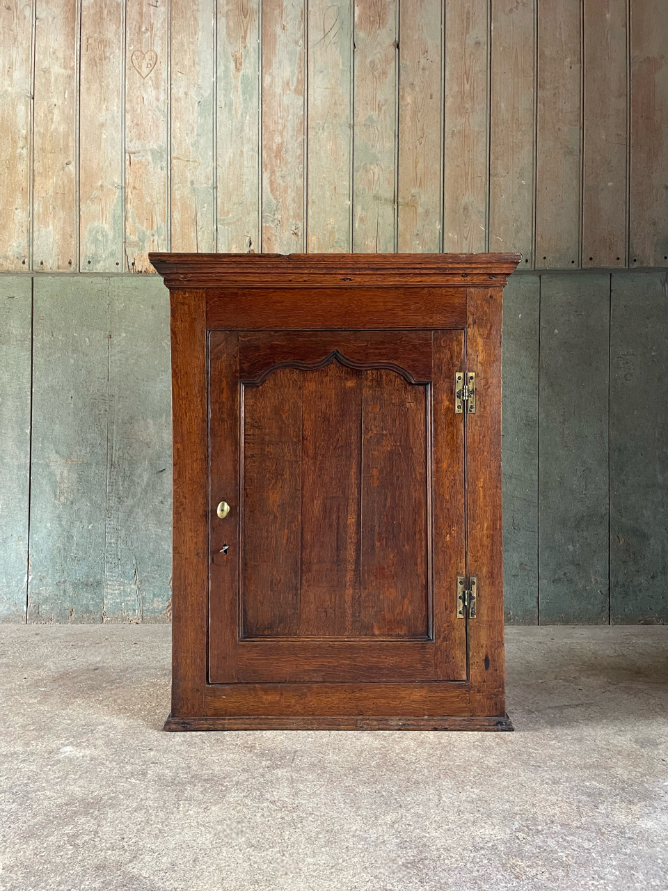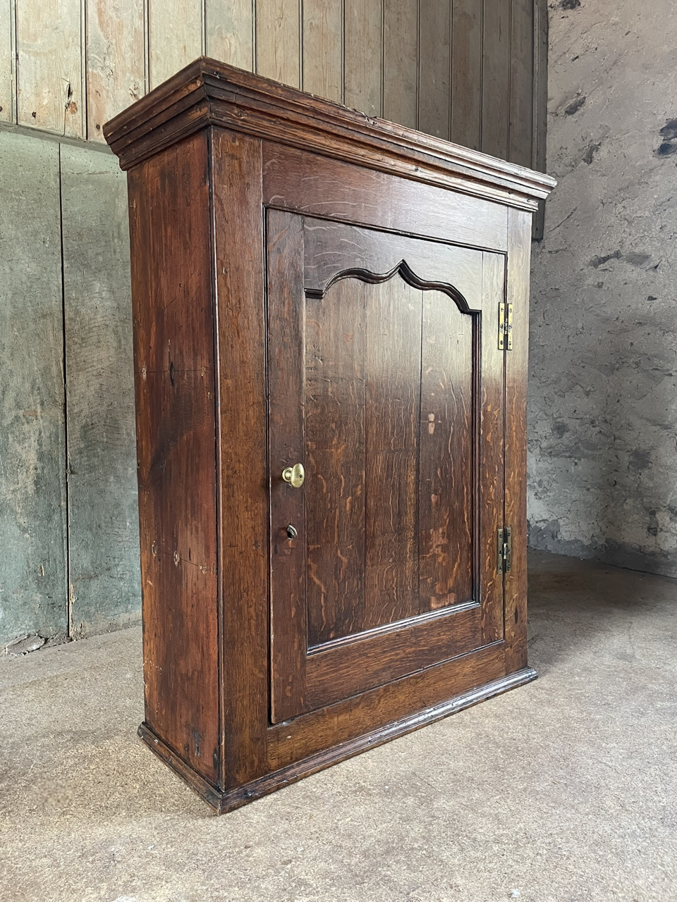 A very attractive and useful Welsh oak wall cupboard with ogee arched panel door.